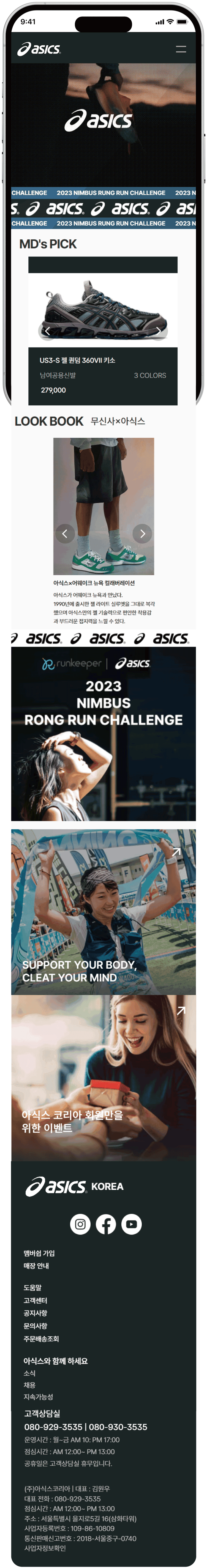 아식스의 스포츠 브랜드 아이덴티티가 웹 전반에서 일관되게 전달되도록 완성도를 높인 프로젝트입니다.